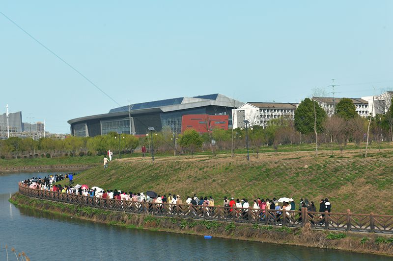 女教职工高举“享健康 心飞扬”的旗帜,迈着矫健的步伐,沿着既定的路线前行。大家一边欣赏春日美丽的校园风光,一边相互加油鼓劲,经过近1个小时的步行,顺利完成了校园健步走活动。